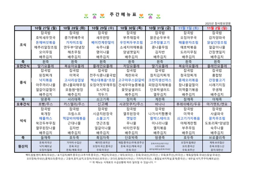 10월5째주 식단표