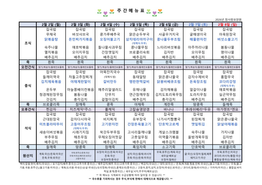 2월1주차 식단표