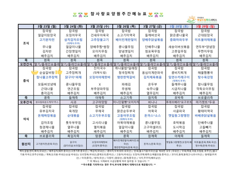 3월4주차 식단표 > 건강 식단표